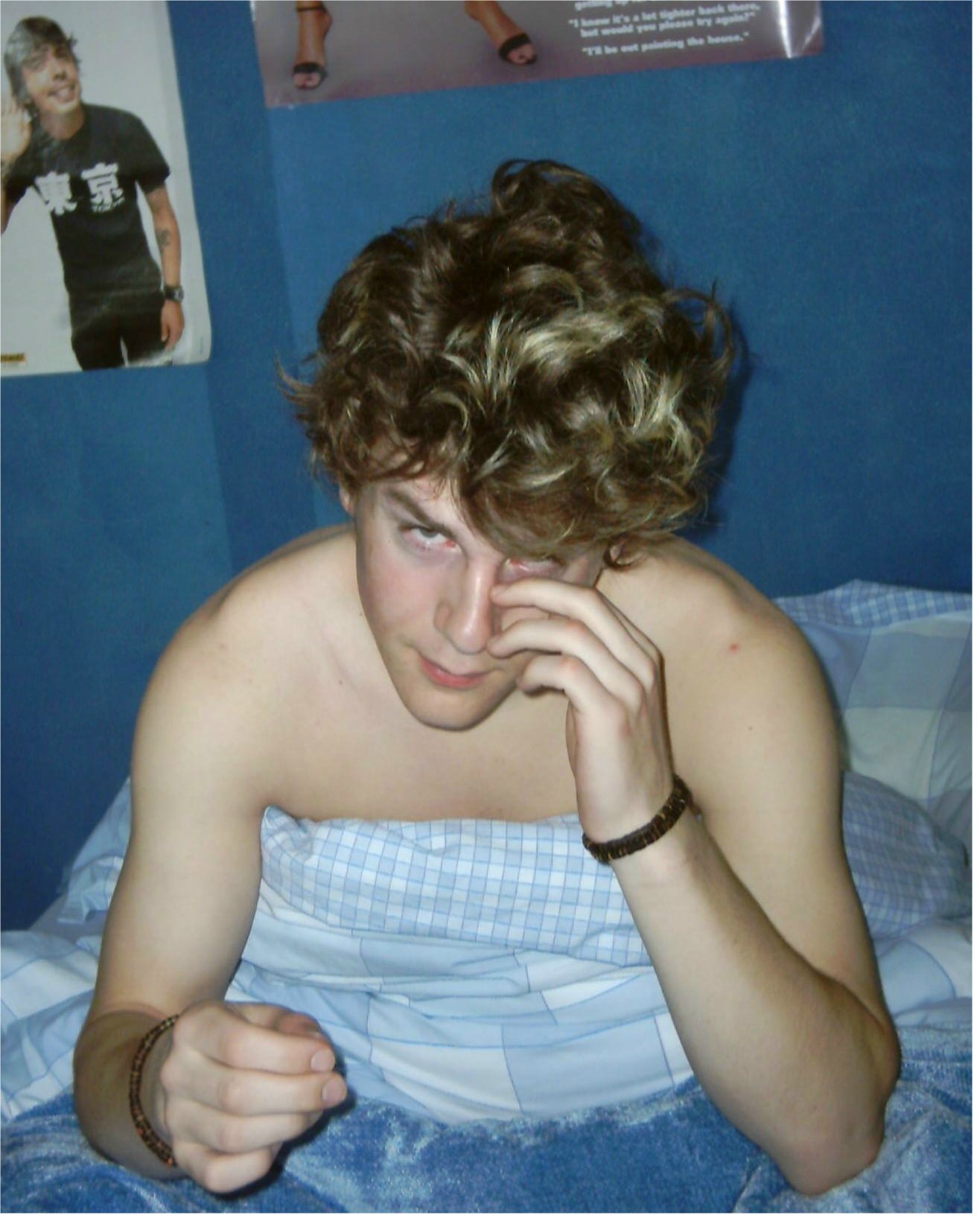The one in bed is Nick, hes got MAD hair (as you can see from da pic) hes got really crurly hair so funny. Anyways load down on Nick, he's old then me by like 6 month n we hav been mates since we were yay high (for those who dont know my measurements, thats really small) Nick is pritty cool so much like his dad its unreal i dont mean that in a bad way, its good, his dad is a LEGEND. He has been/done like most things its mad, makes me look like i have lived in a small box all my life.
